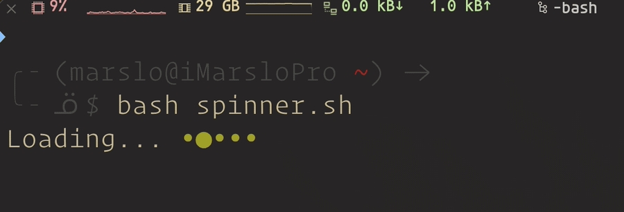 local spinner=( '⣄' '⣆' '⡇' '⠏' '⠋' '⠹' '⢸' '⣰' '⣠' )